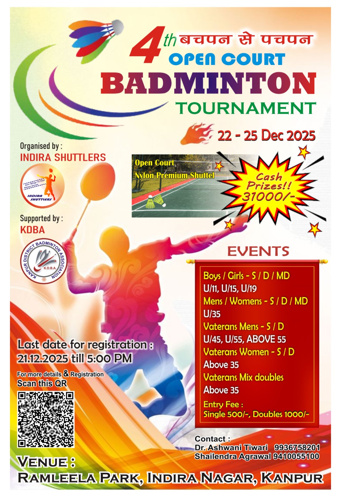 • 31000 पुरस्कार राशि बैडमिंटन प्रतियोगिता इंदिरा नगर में 22 दिसम्बर से Sports