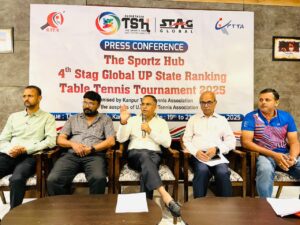 कानपुर (Stag Global table tennis tournament) । कानपुर टेबल टेनिस एसोसियेशन एवं ‘द स्पोर्ट्स हब’ के संयुक्त तत्वावधान में स्टैग ग्लोबल-टीएसएच 4th यूपी स्टेट रैंकिंग टेबल टेनिस टूर्नामेंट का आयोजन 19 से 21 सितंबर 2025 तक ‘द स्पोर्ट्स हब’, आर्यनगर में होगी। तीन दिवसीय इस प्रतियोगिता में प्रदेश के विभिन्न जनपदों के पांच सौ खिलाड़ी भाग लेंगे, जिनमें कई नेशनल-इंटरनेशनल खिलाड़ी भी शामिल हैं। प्रतियोगिता के विजेता, उप-विजेता तथा सेमीफाइनलिस्ट खिलाड़ियों को मेडल्स के साथ ही साथ नगद पुरस्कार दिया जायेगा। यह जानकारी उत्तर प्रदेश टेबल टेनिस एसोसियेशन के अध्यक्ष संजीव पाठक ‘बॉबी’, अंतर्राष्ट्रीय टीटी खिलाड़ी गीता टंडन कपूर,सचिव संजय टंडन, सुनील सिंह और ‘द स्पोर्ट्स हब’ के डायरेक्टर ऑपरेशंस पी.के. श्रीवास्तव ने पत्रकार वार्ता में दी।